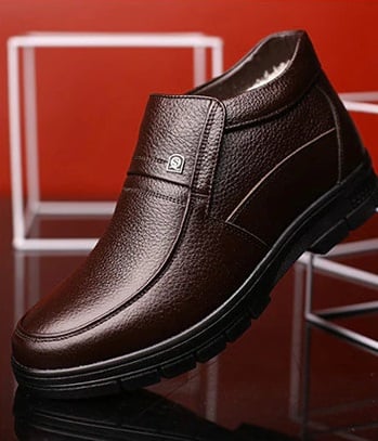 These men's leather boots with fur lining are guaranteed to be useful in cold winter weather.