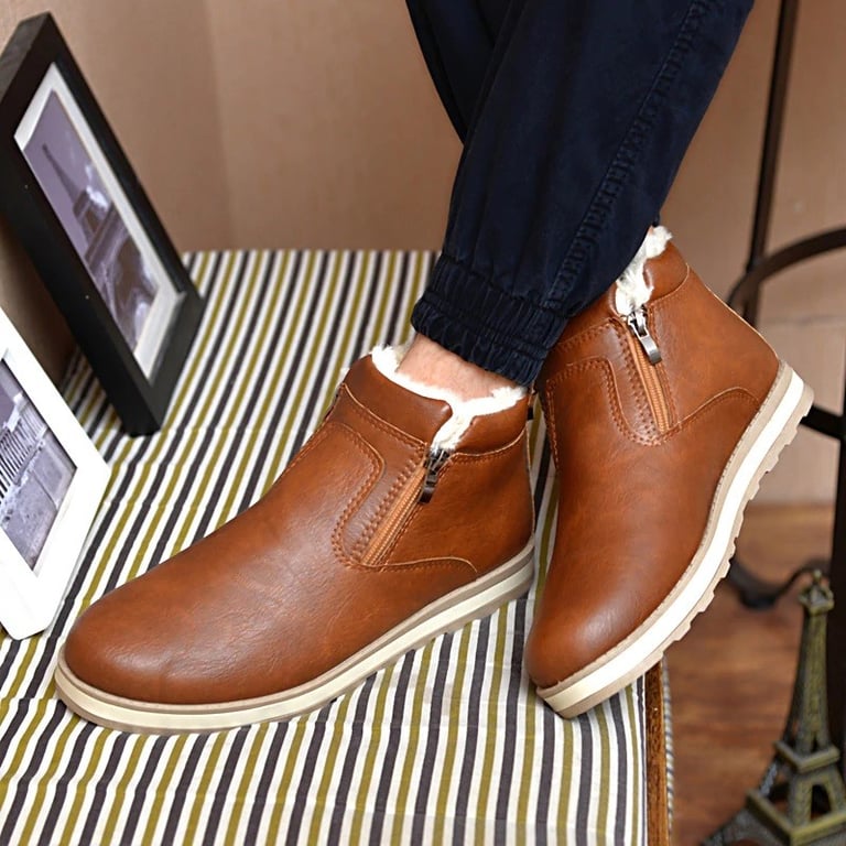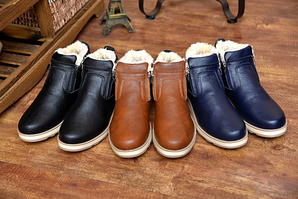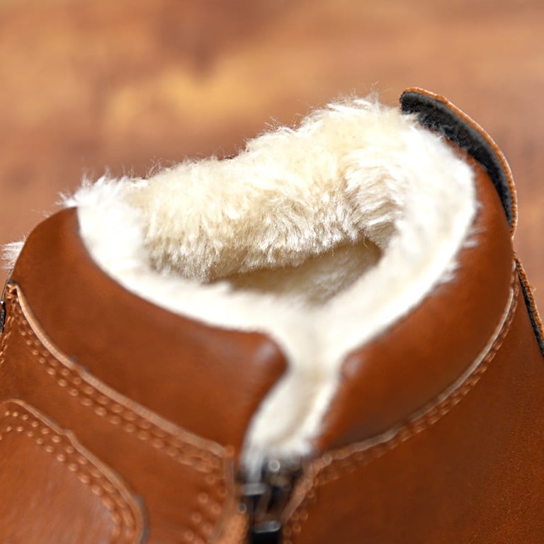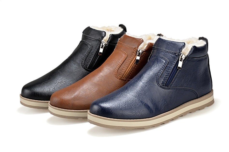 These men's leather winter boots with fur lining are suitable for cold winter weather.