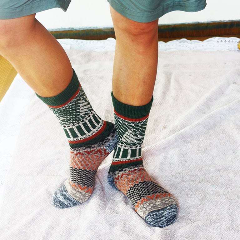 Multicoloured socks for the winter season with a higher cut. Universal size 39-44.