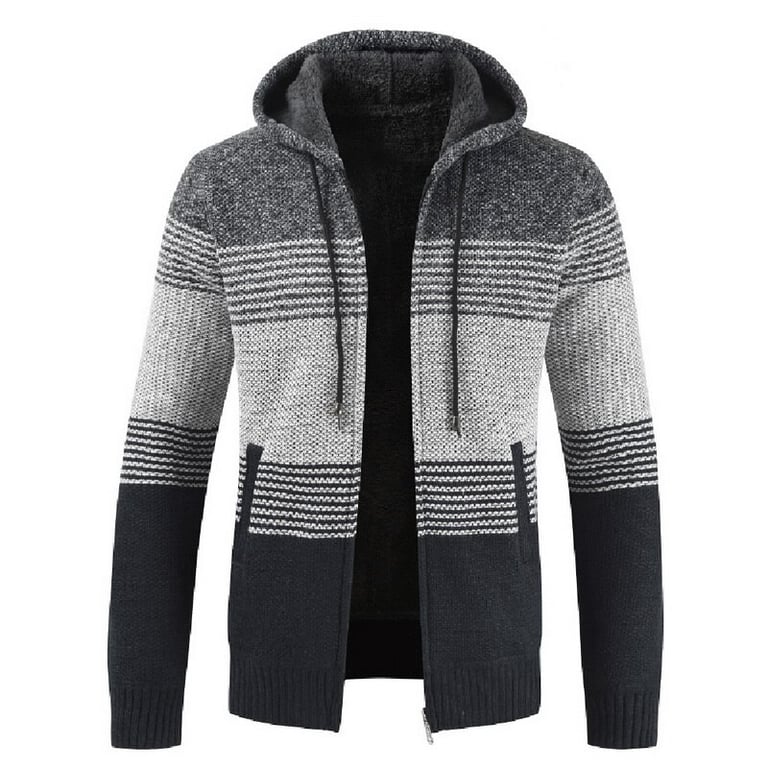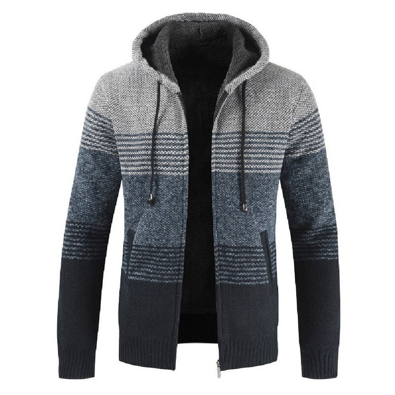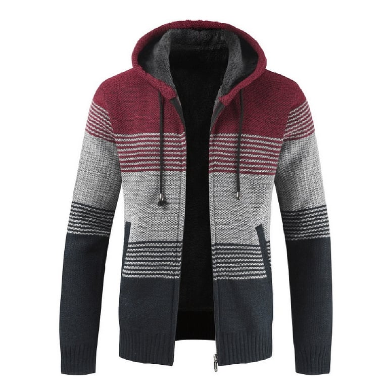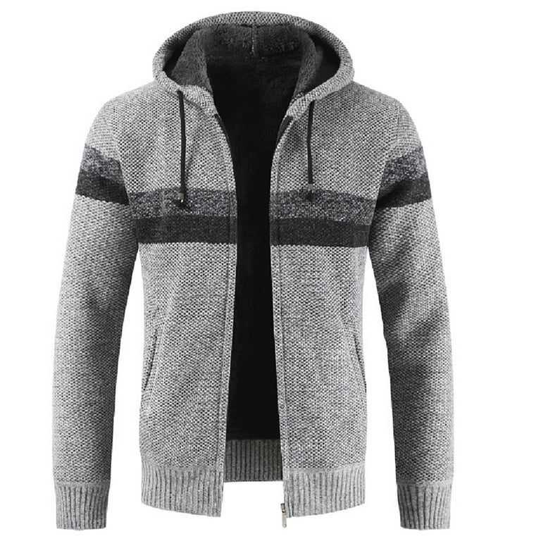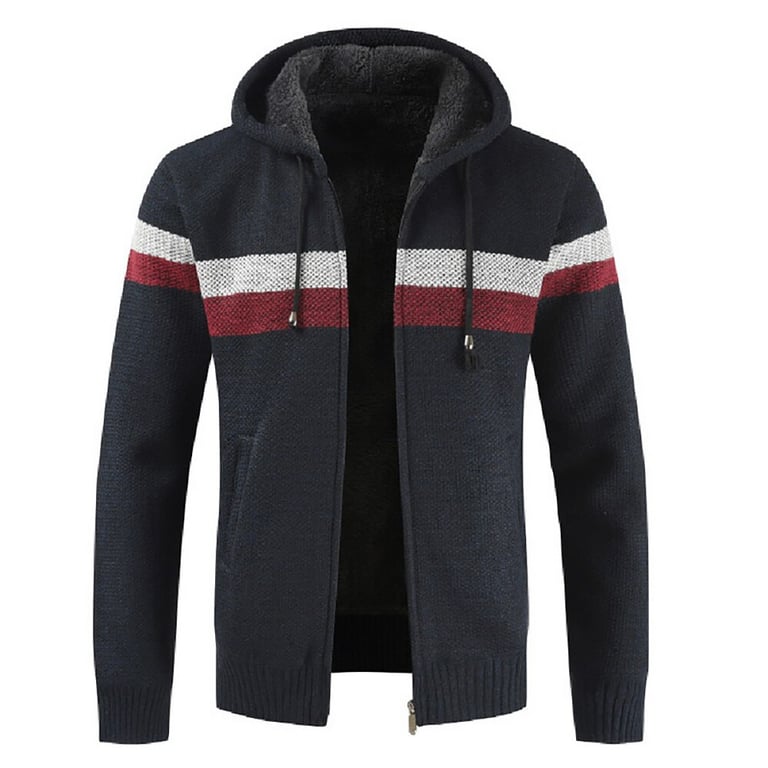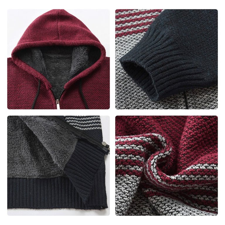 This men's winter sweater will really keep you warm in cold weather. It is made from high-quality material, has a short fur lining inside, and features a zip fastening. The sweater has a modern design and comes with a hood. When you get this sweater, you will see that it complements every outfit.