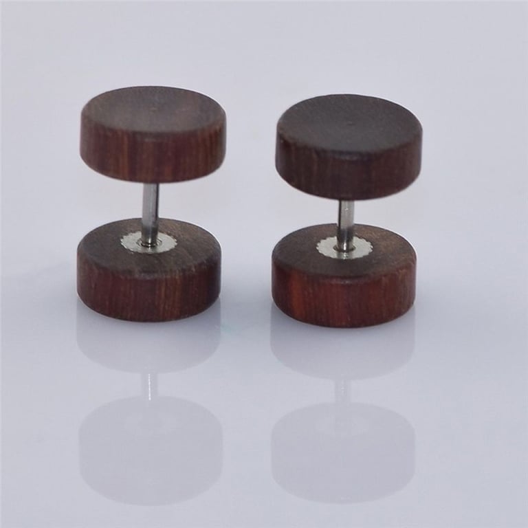 Do you like wooden fashion accessories? Then we have men's wooden earrings in the shape of dumbbells for you.