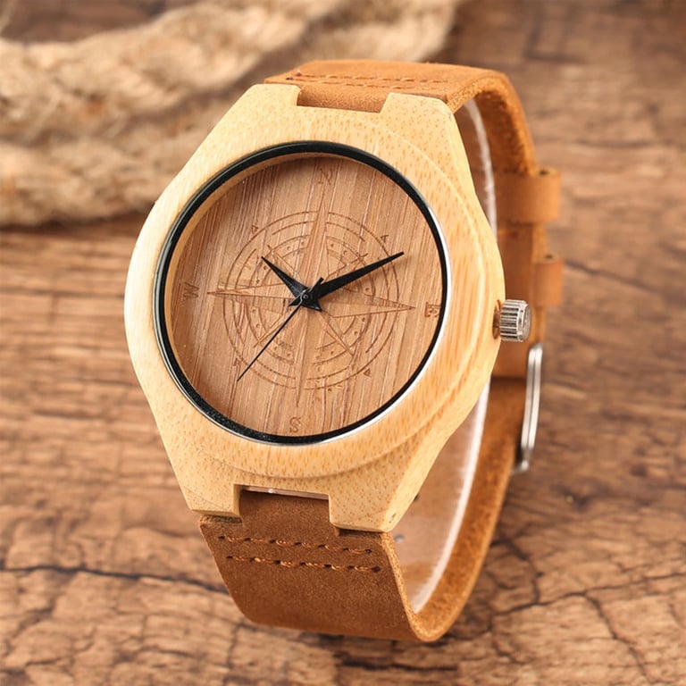 Beautiful natural watch featuring a navigation star motif, perfect for all sea enthusiasts or lovers of navigational elements. A great stylish gift for under the Christmas tree.