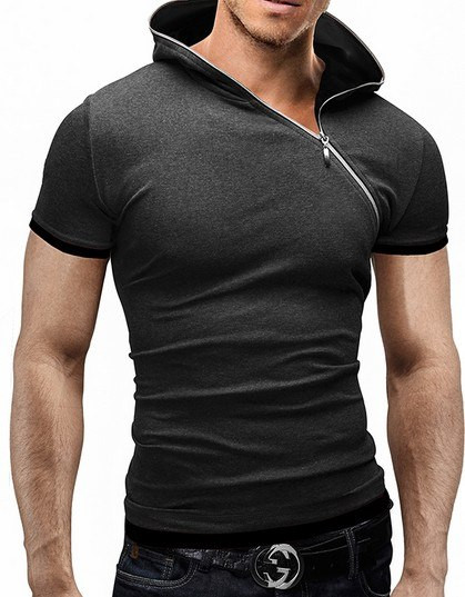 Men's short-sleeve t-shirt with a fitted cut. The t-shirt features a collar with a hood and a zip fastening. Available in multiple colour options.