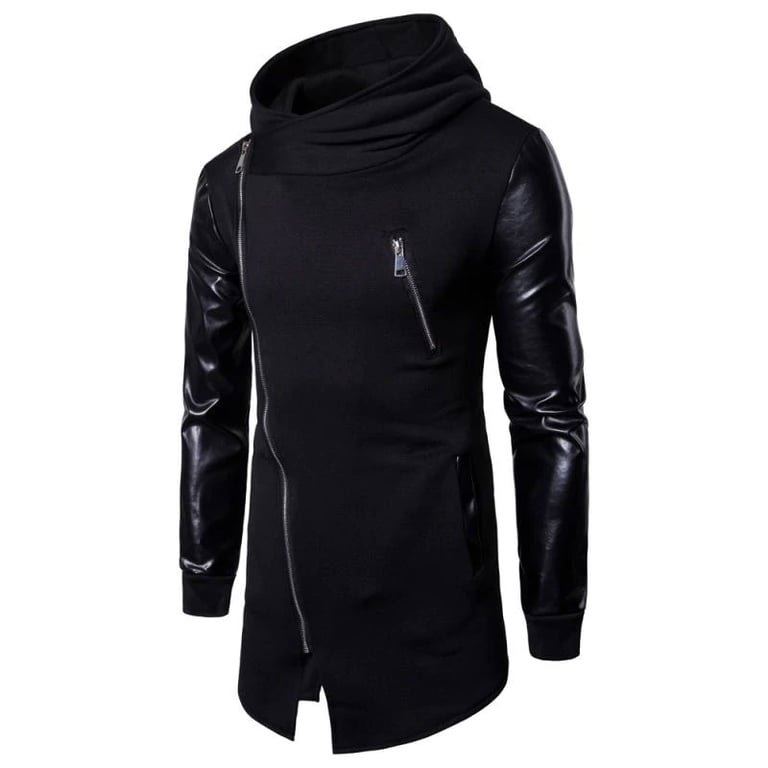 Men's sweatshirt with combined shiny sleeves. The sweatshirt features a wide shawl collar and an angled zip fastening. Chest pocket with zip. Available in several colours.