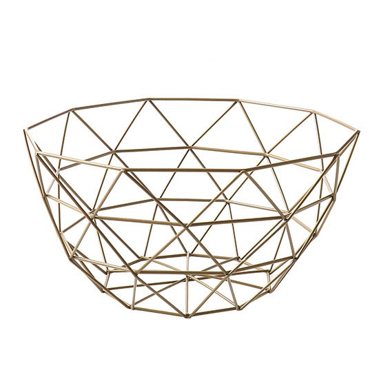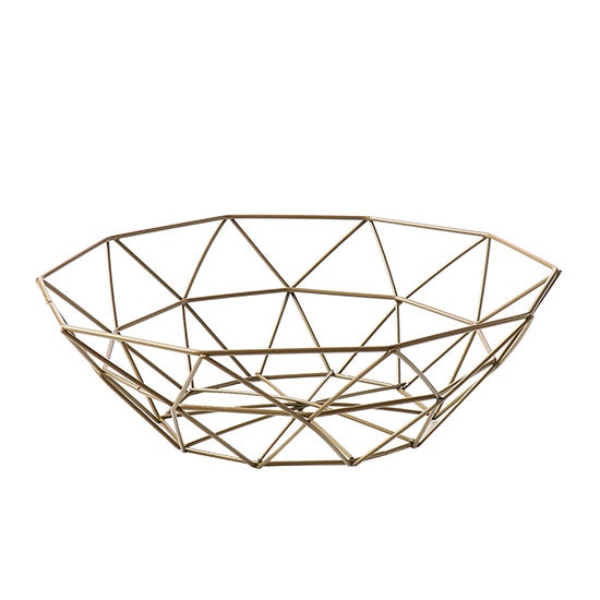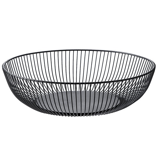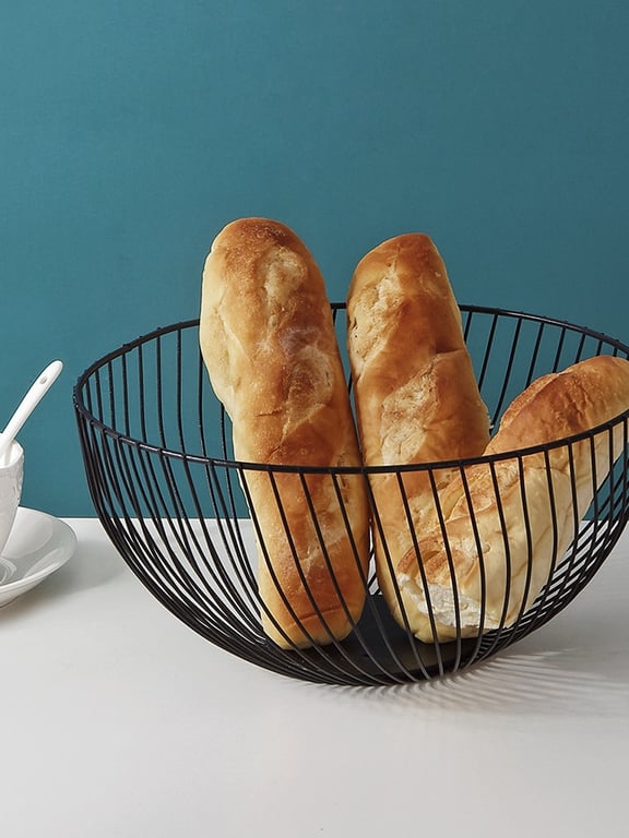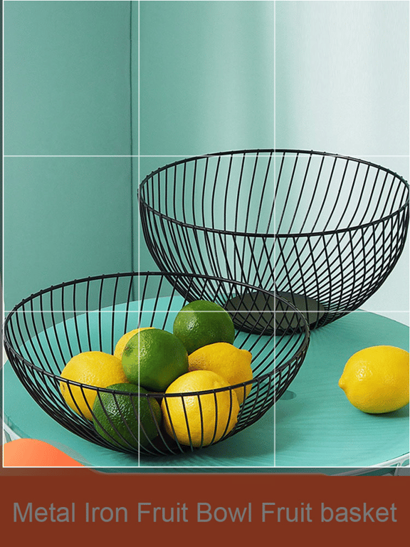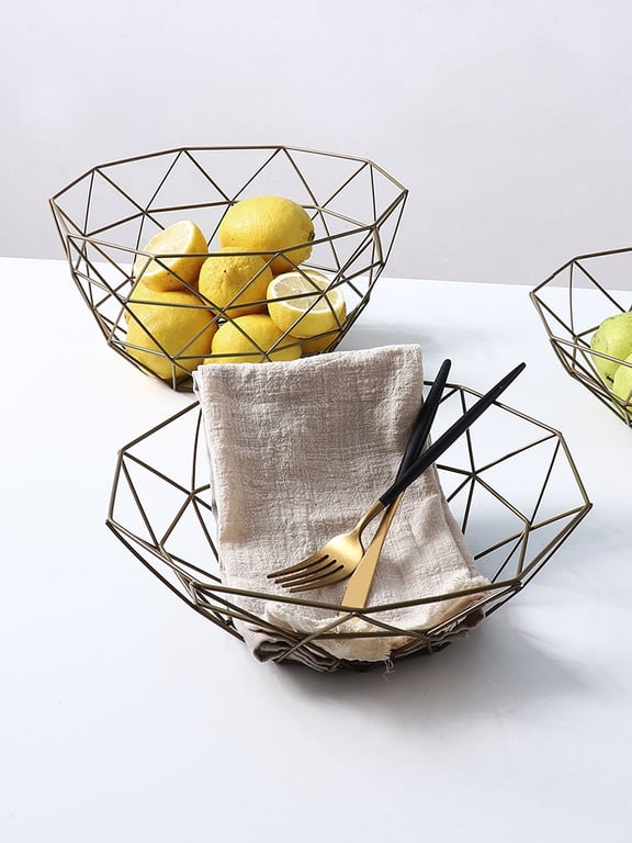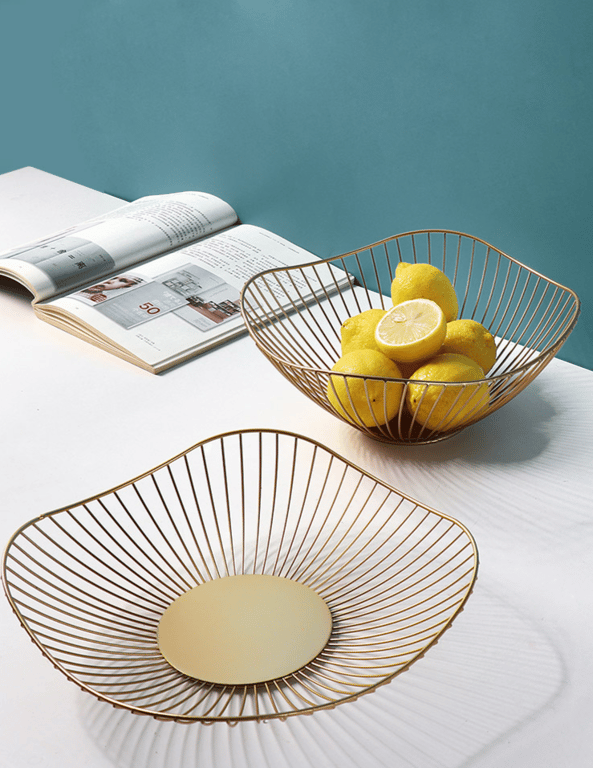 A metal bowl for fruit, vegetables, or other treats. The bowl is practical and modern. It fits into any kitchen or dining room. With it, your fruit or various snacks won't be rolling around in cupboards and taking up space.