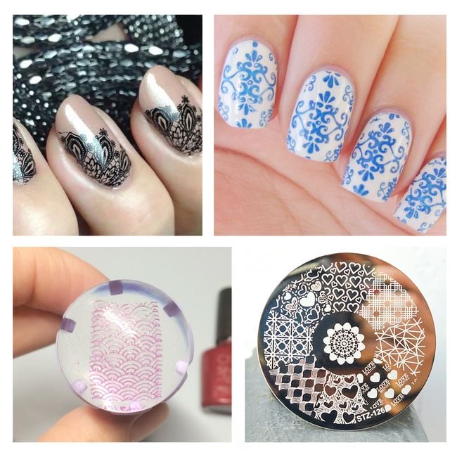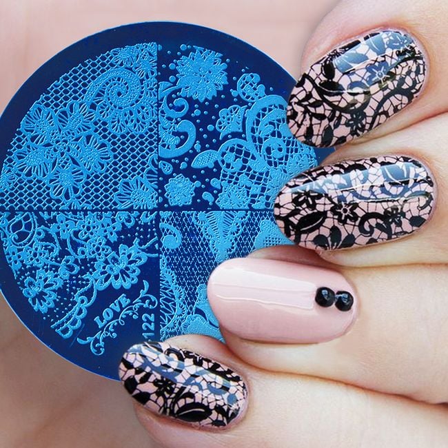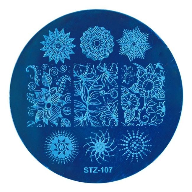 Metal stamping plate for nail decoration, available in many beautiful variations.