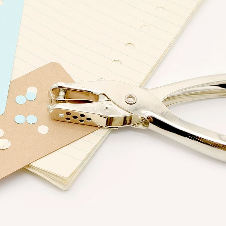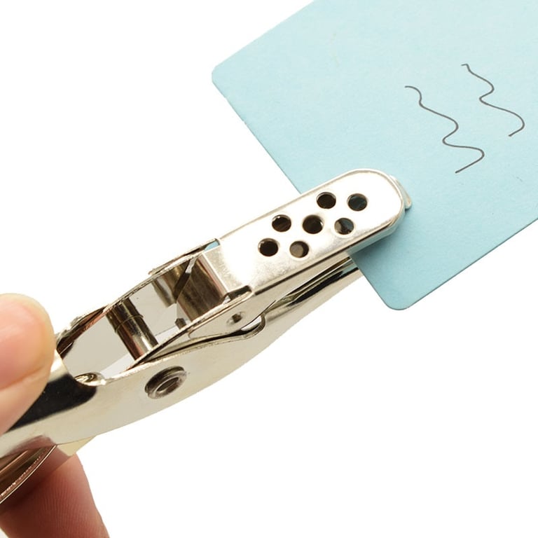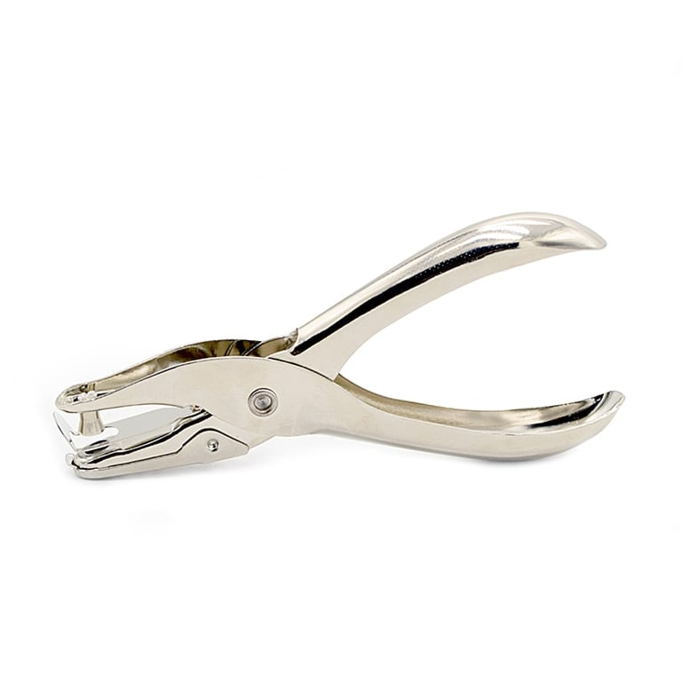 • Metal hole punch with a single round hole.