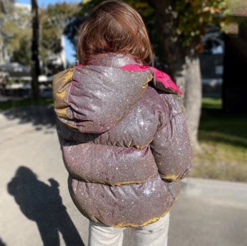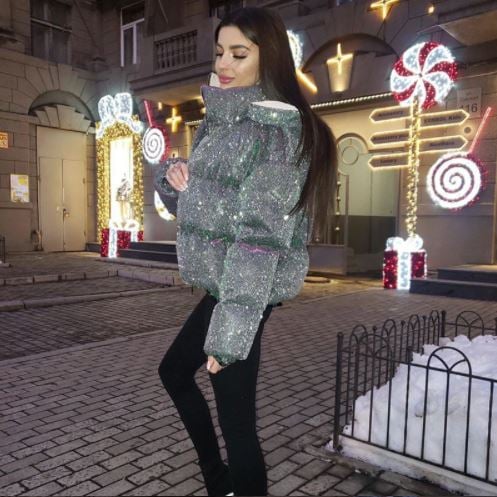 Metallic beautiful women's winter jacket with fur.