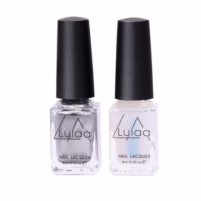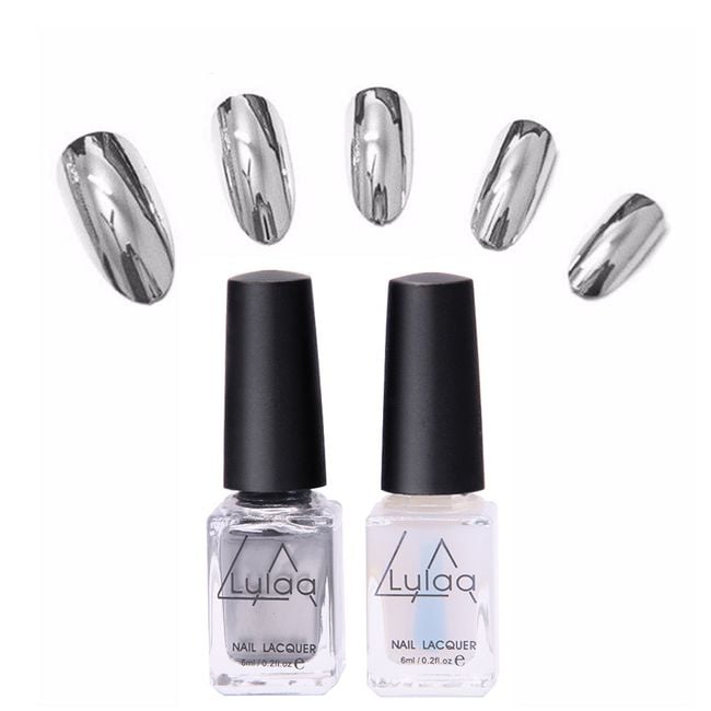 Breathe life into your nails with a silver shade nail polish featuring a mirror effect. The set includes nail polish and a fixing gel for artificial nails. The contents of the bottles are 6 ml.