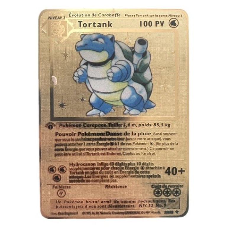 Do you want to become the proud owner of a golden Pokémon card? These unique cards are ideal for collectors and anyone who loves Pokémon. The Pokémon card has standard dimensions 6.3 x 8.8 cm and is made of paper. The metallic Pokémon collectible card – 1 legendary card – makes a great gift for any Pokémon fan!