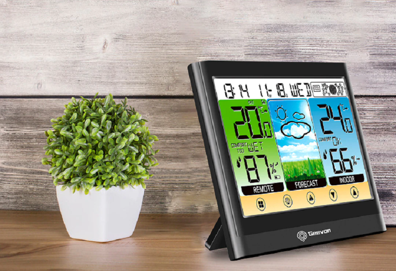 A meteorological station that fits perfectly into your interior. With this weather station, you will have an overview of the current weather. The clear LCD display shows the indoor and outdoor temperature, humidity, date, and time. You can also set an alarm.