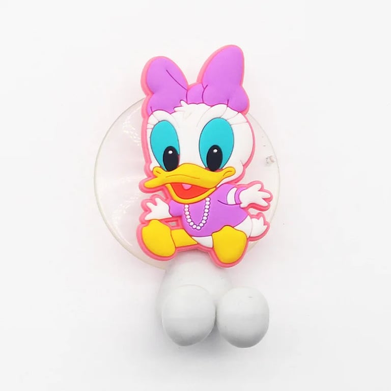 The holder attaches with a suction cup to, for example, a mirror or tiles.