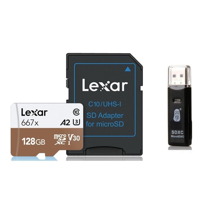 Package Contents: 1x Micro SDXC card, 1x adapter, 1x card reader