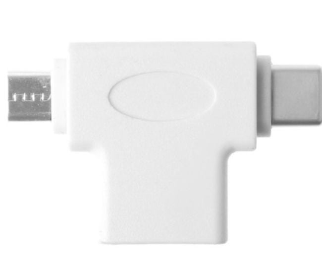 This adapter allows you to charge a phone or laptop with a USB Type-C connector using a standard micro USB cable.