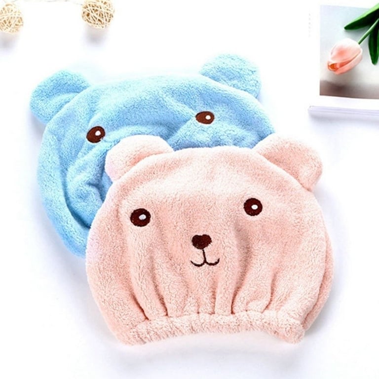 The towel is shaped like a cap and helps hair dry faster.