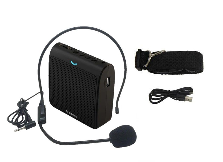 Package contents: 1x microphone, 1x amplifier, 1x battery, 1x USB cable, 1x strap