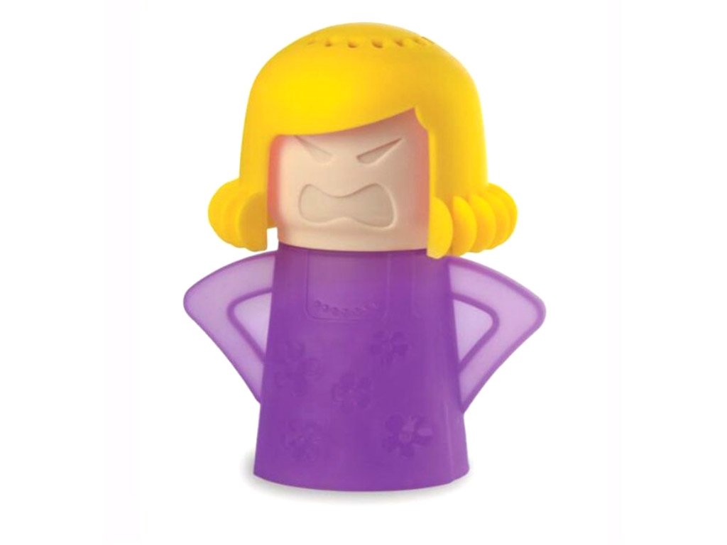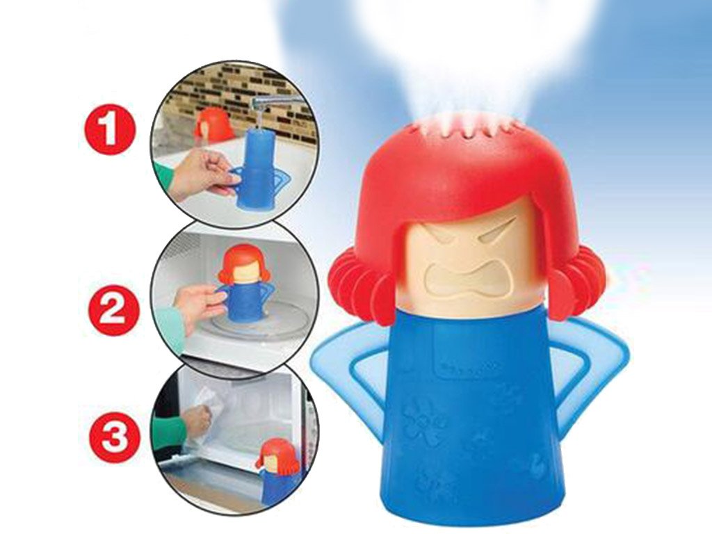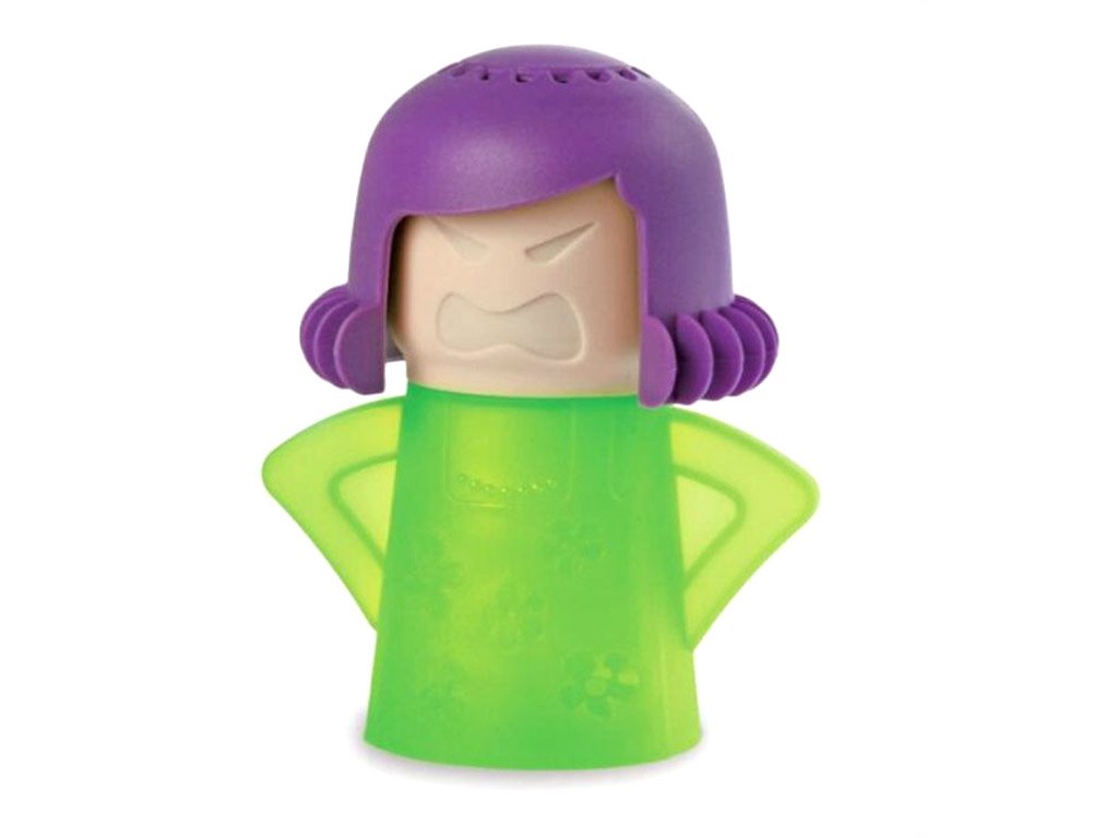 A funny and practical microwave cleaner in the shape of an angry mother-in-law. It's easy to use; just fill it with water and vinegar (in a ratio of about 50:50), and then place it in the microwave for approximately 5-8 minutes on maximum power. After that, simply wipe the microwave with a cloth or sponge.