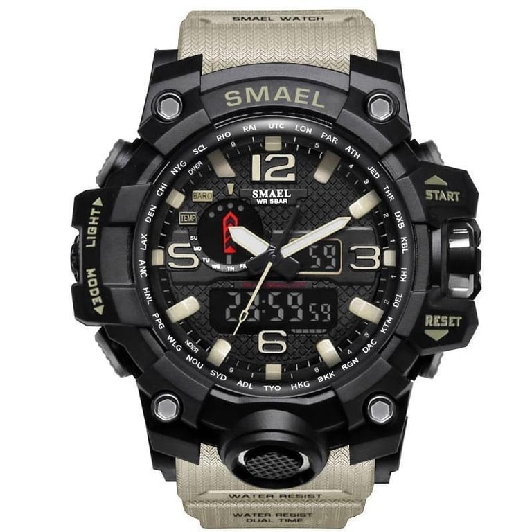 Military-style watch with a multitude of features. The main advantage of this watch is its water resistance up to 50 metres.