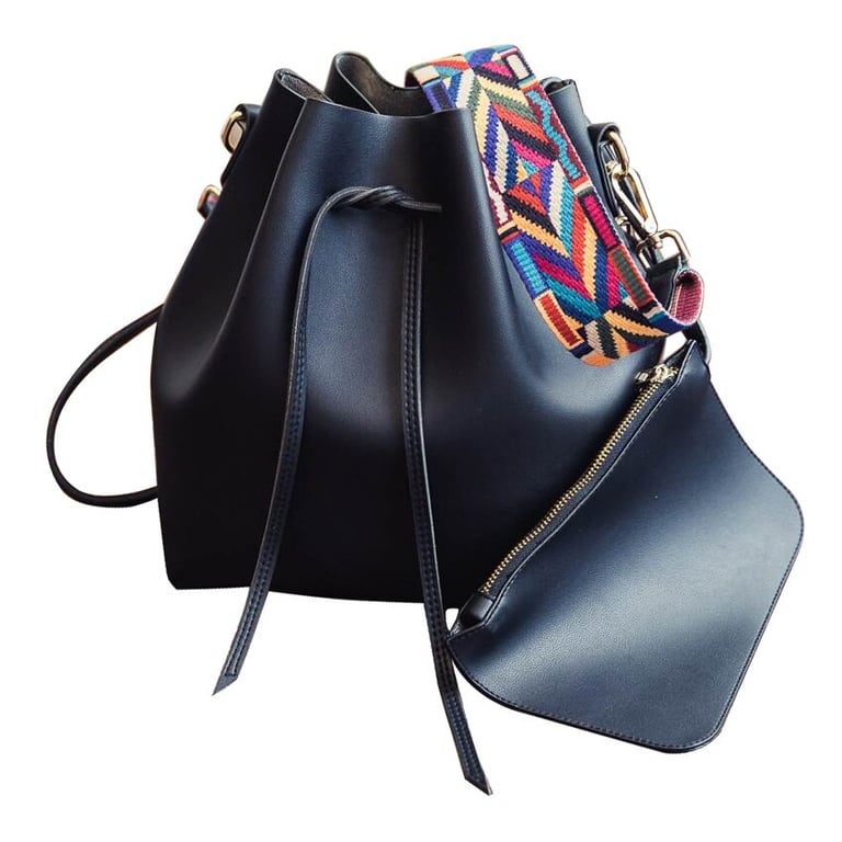 Women's bucket bag with a colourful wide strap and an additional adjustable long strap. Available in multiple colours.