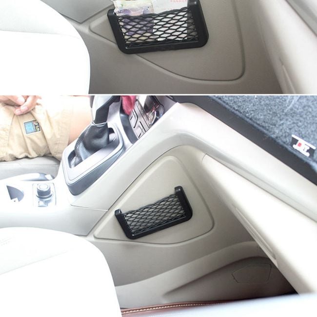 The adhesive mini net can be stuck anywhere in the car where you need to put something down. No installation is required; simply stick the net on. The net is universal, suitable for all cars and any small items. Apply to a dry and smooth surface.