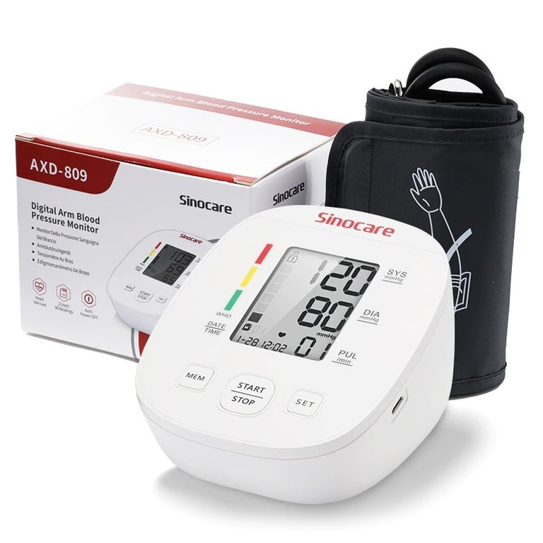 A blood pressure monitor for the arm is an essential tool for older individuals. It quickly and accurately measures blood pressure, heart rate, and can even detect heart arrhythmias. It has a recording capacity for 2 users with up to 99 records for each. All information is displayed on a large, easy-to-read screen directly on the device. It adjusts to arm circumferences of 22 - 42 cm. Powered by 4 AAA batteries or a USB cable.