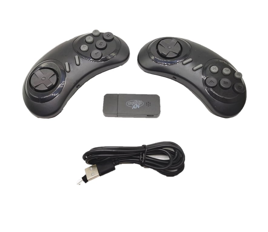 Package contents: 1x game stick, 2x controller, 1x USB cable, 1x 2 GB Micro SD card
