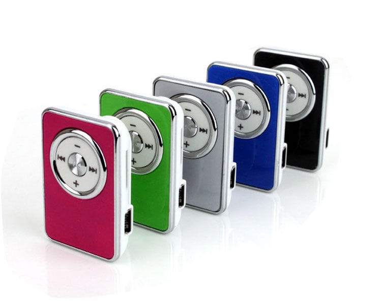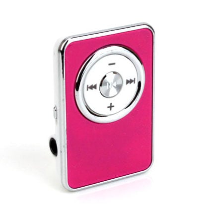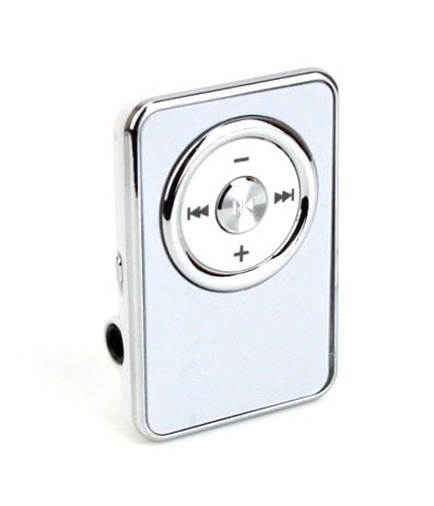 Miniature MP3 player with a practical clip for attaching to a backpack or clothing. Due to its size, lack of display, and durability, the player is exceptionally suitable for sports activities.