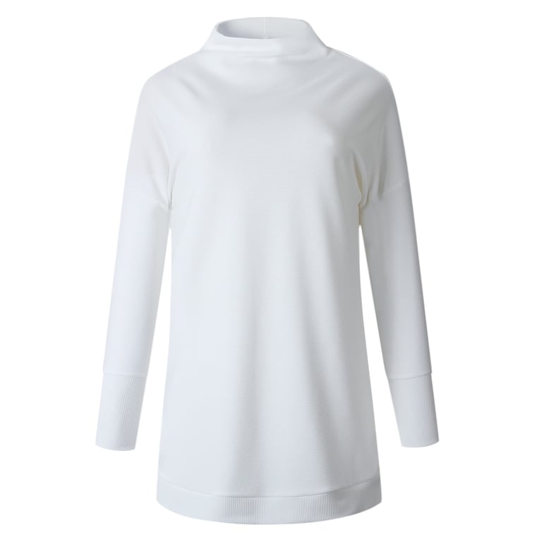 Autumn women's mini dress with long sleeves and a roll neck.