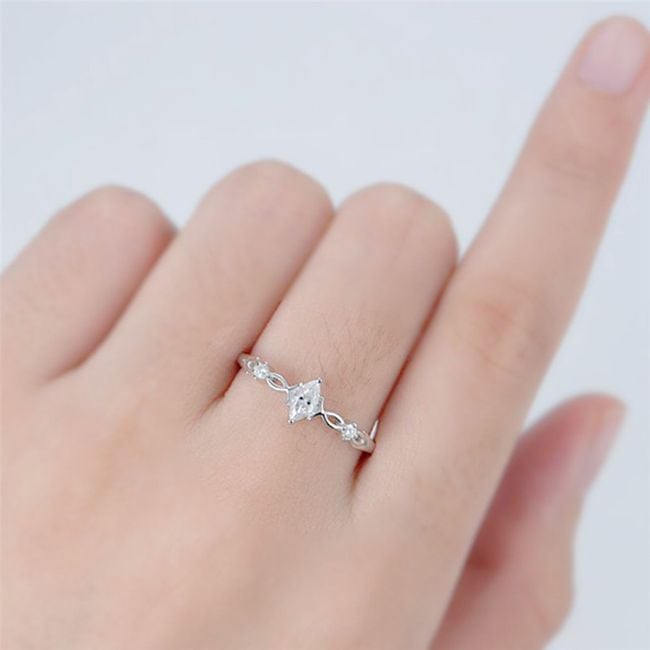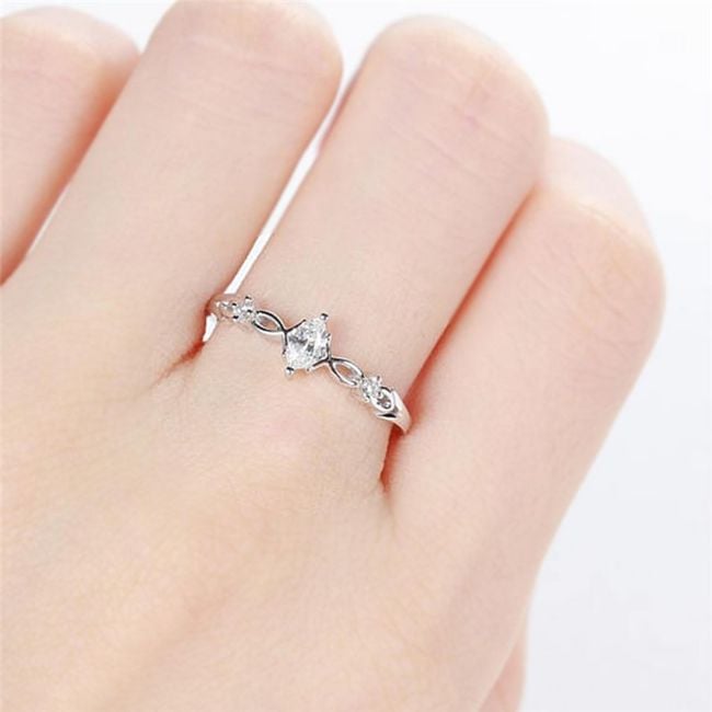 The ring has a silver colour and is complemented by a white or clear stone, making it perfect for everyday wear as well as social events.