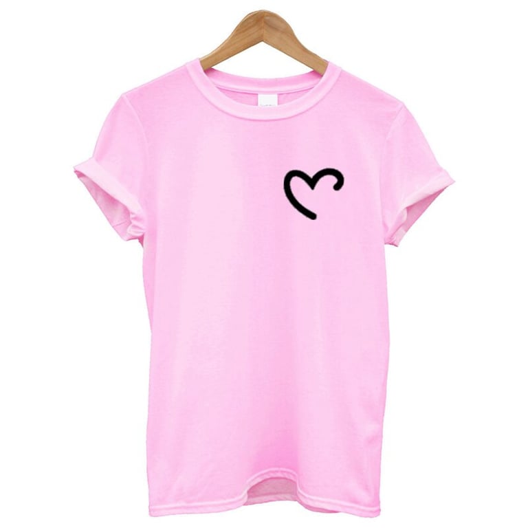 Women's t-shirt with short rolled sleeves and a round neckline. Print with a heart on the front. Loose fit. Available in multiple colours.