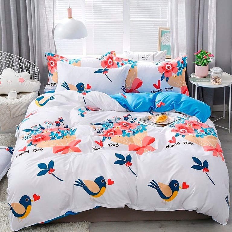 Bedding set for a double bed with an original pattern. The set includes 1 duvet cover, 1 fitted sheet, and 2 pillowcases. Available in several sizes.
