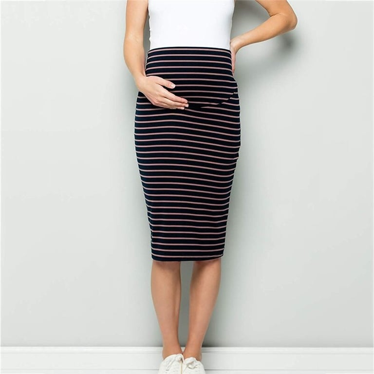 Women's elastic maternity skirt with a high elastic waistband. Pattern with a colourful stripe. Available in two variants.