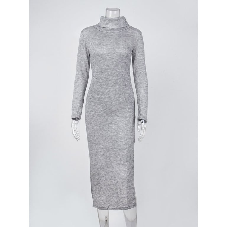 Women's long dress with a turtleneck. The dress features long sleeves, a comfortable cut, and a side slit. Available in several colours.