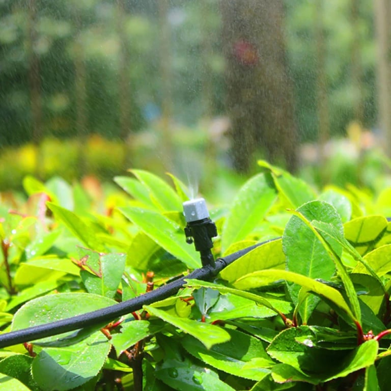 Package contents: 1x hose, 1x end dripper, 1x quick connector, 1x connector (3/4" and 1/2"), 10x misting nozzle, 10x dripper