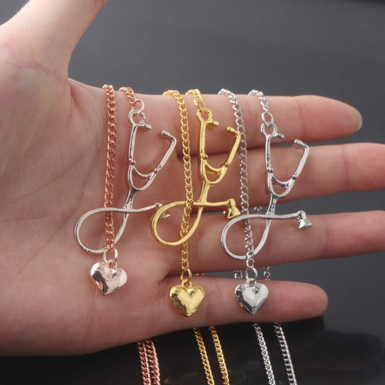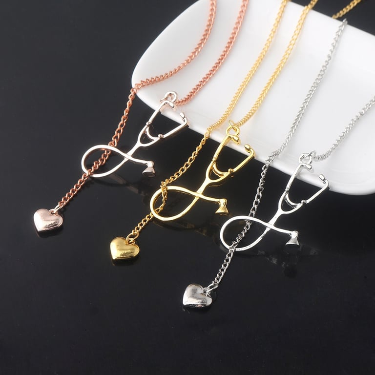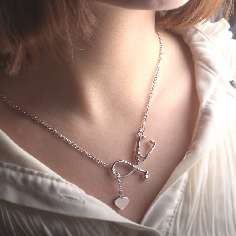 Modern Classic Stethoscope Heart Necklace