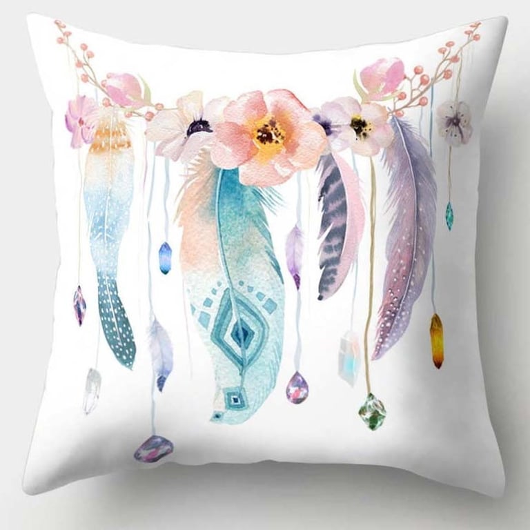 Stylish cushion covers with feather motifs. Great for decorating any room. Product features: