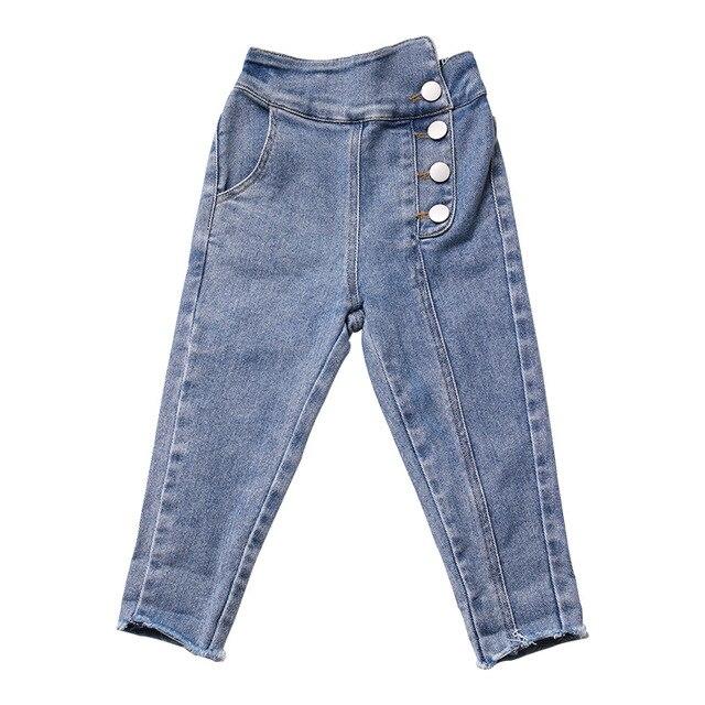 Modern jeans with decorative buttons for girls.