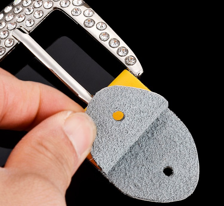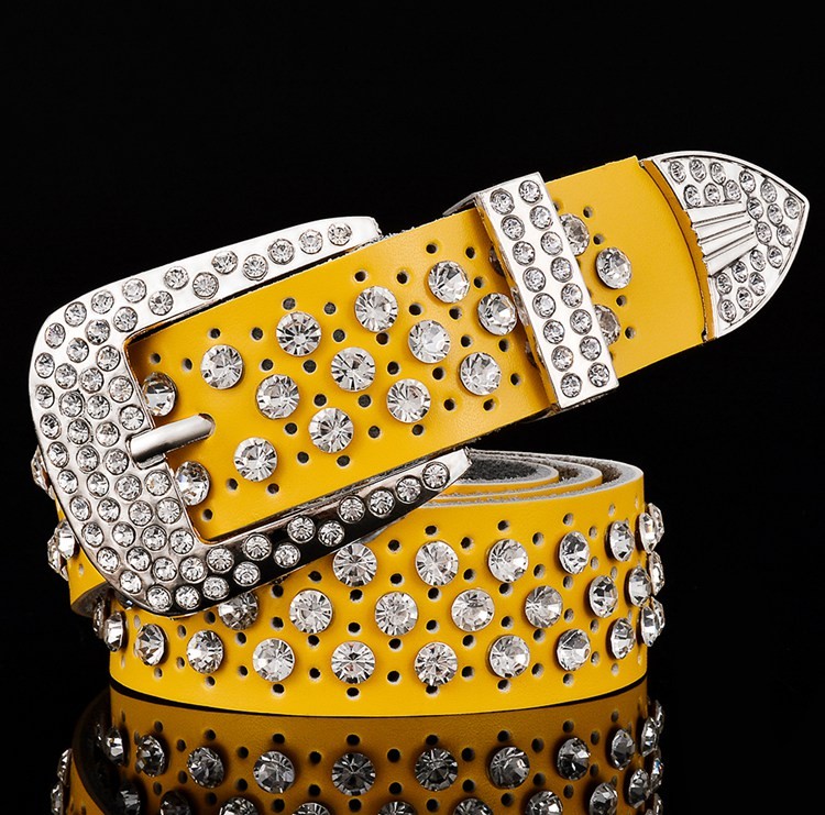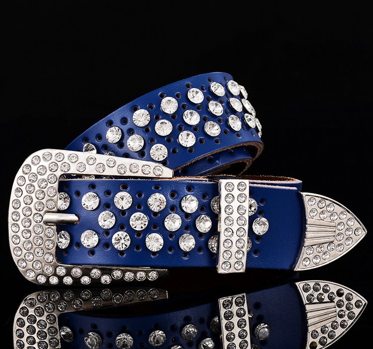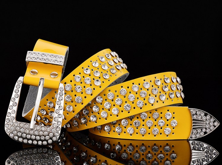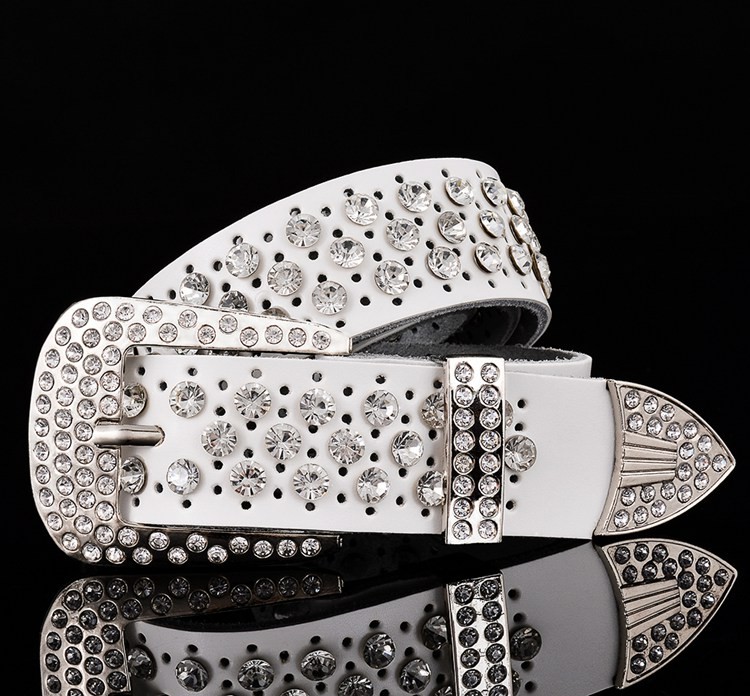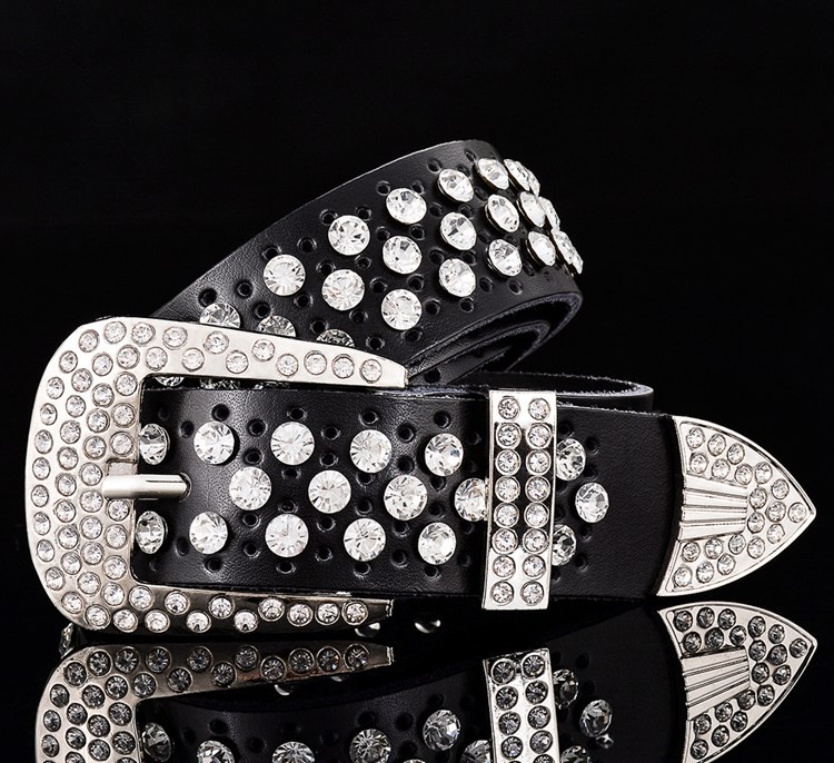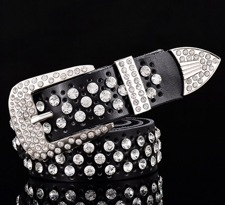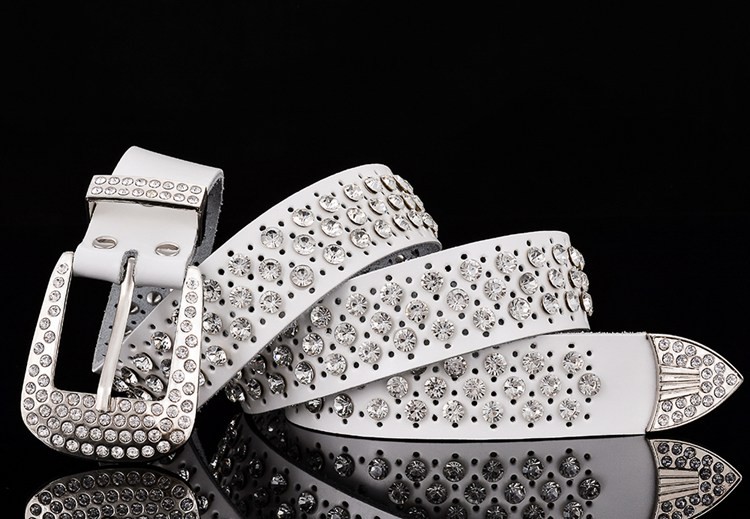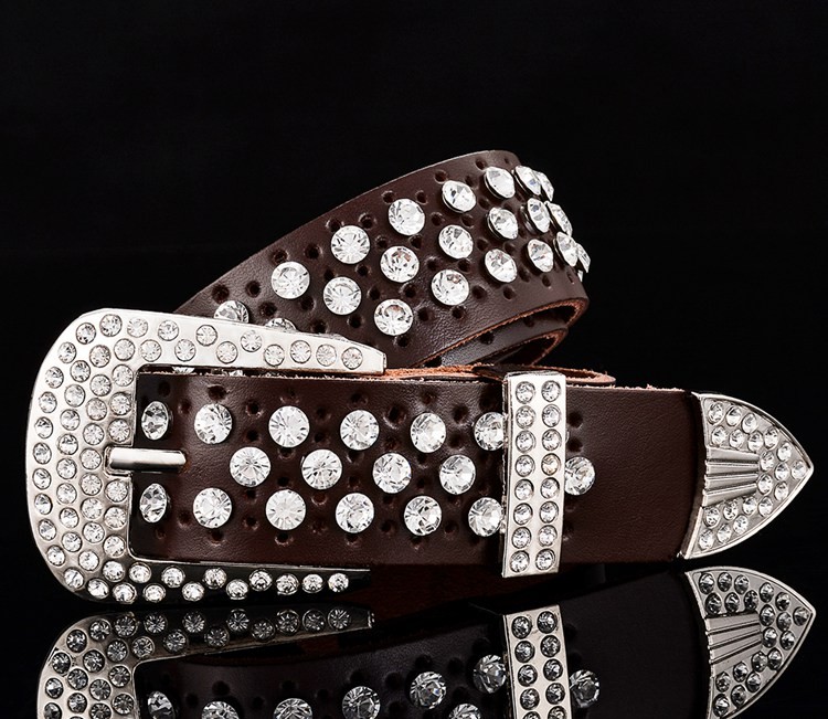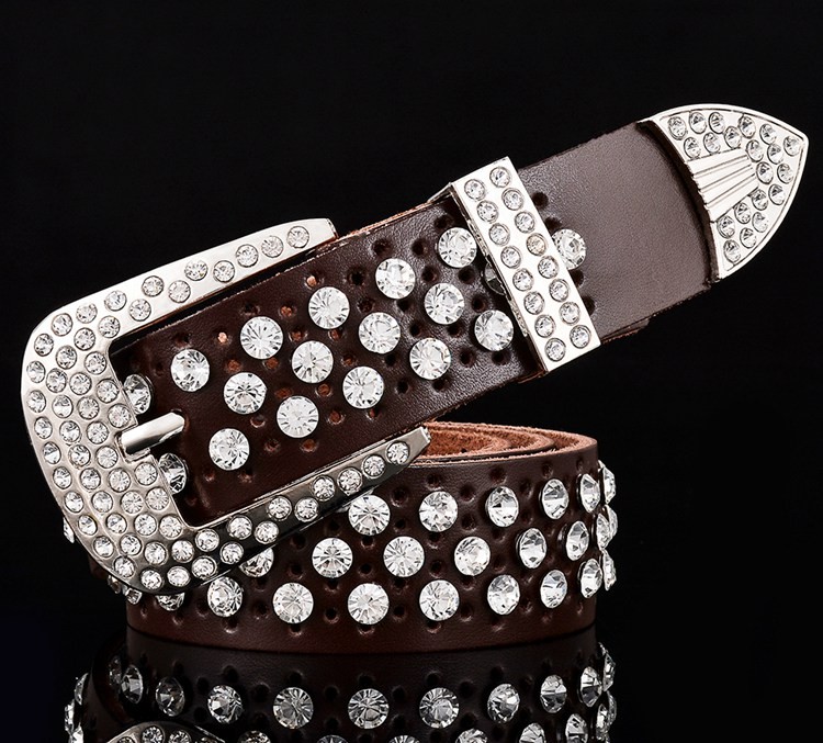 A modern leather belt adorned with luxurious stones will enhance any woman's wardrobe.