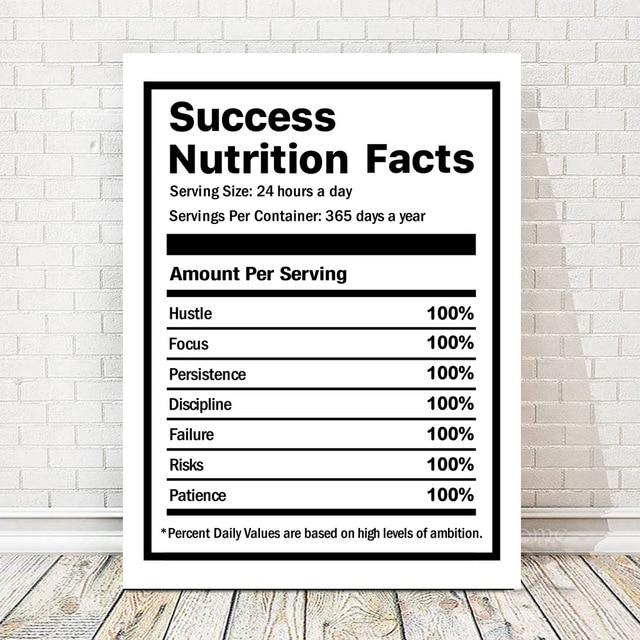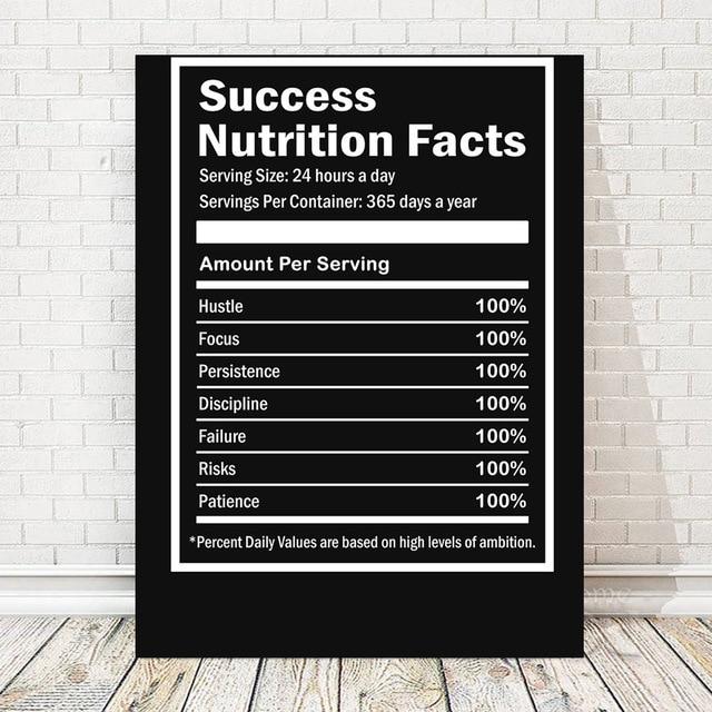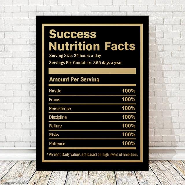 Picture with motivational quotes. Success Nutrition facts. The picture is unframed.