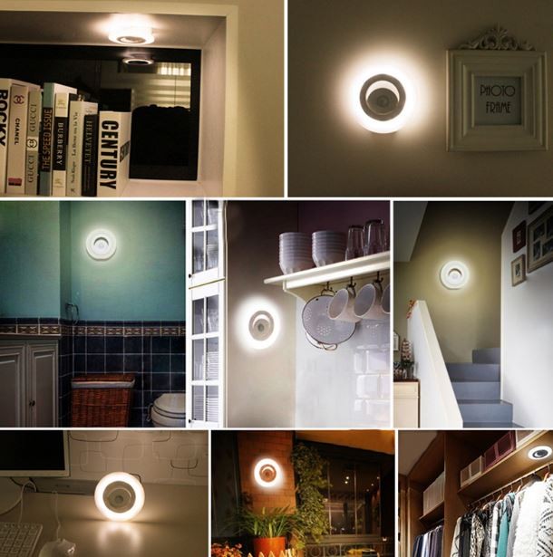 Modern round battery-operated light with a sensor