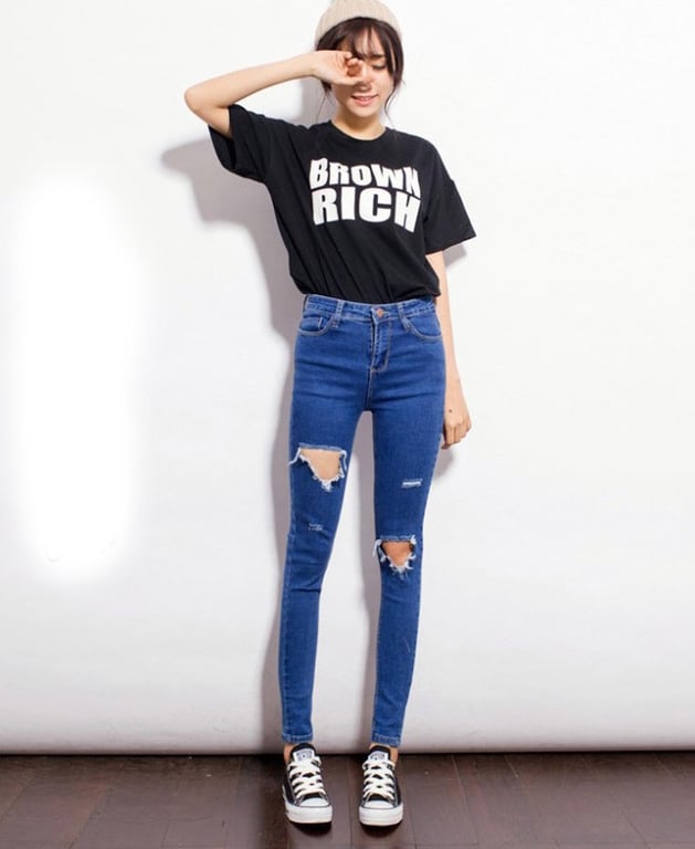 Stylish, slim jeans with holes that beautifully adapt to and highlight your figure.