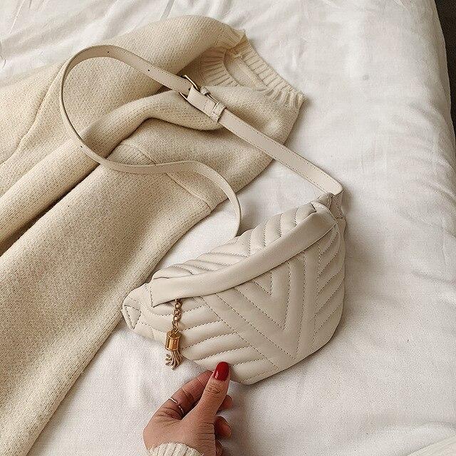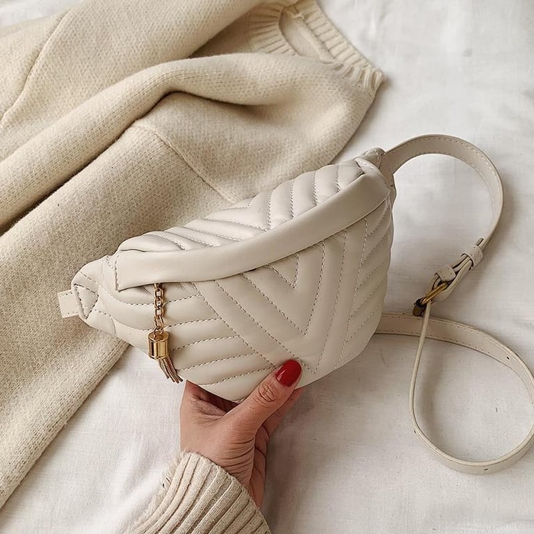 Modern women's waist bag in a beautiful design. Available in blue, black, green, or beige.