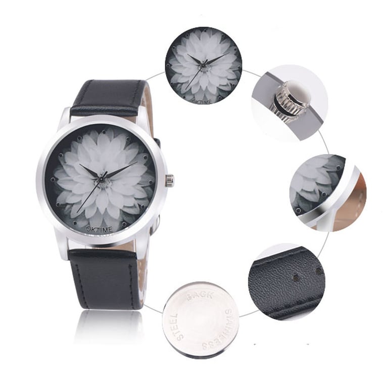 These ladies' watches are beautiful and there is a large flower in the centre of the dial.