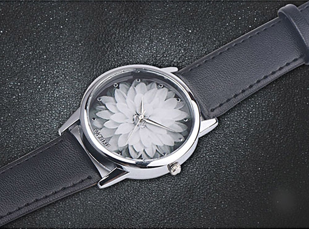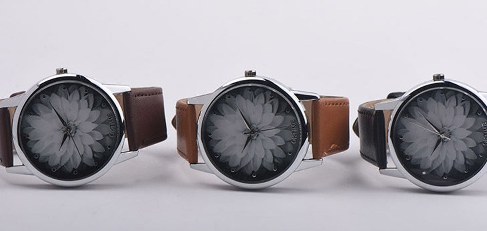These ladies' watches are beautiful and there is a large flower in the centre of the dial.