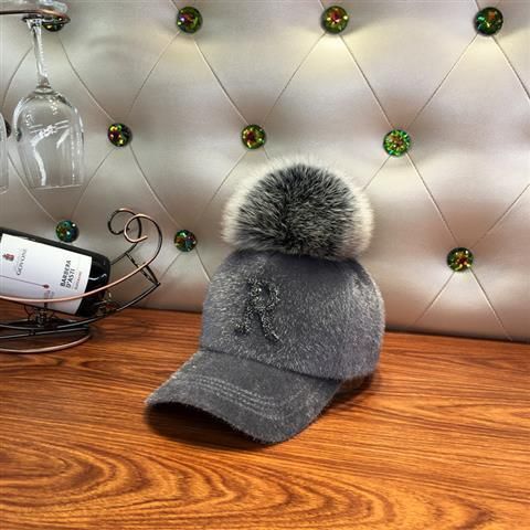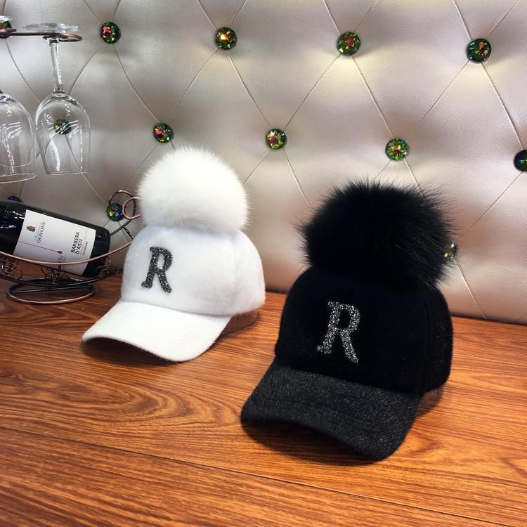 Beautiful and high-quality women's cap styled like winter hats with a fluffy pom-pom.