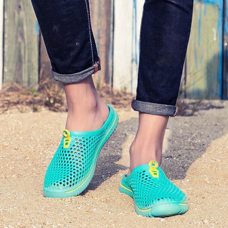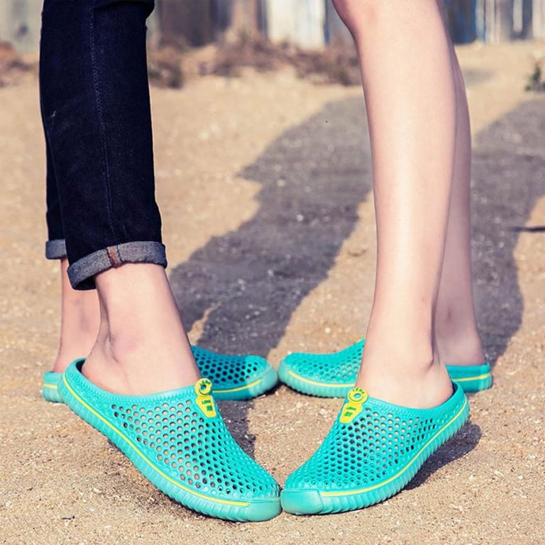Rubber unisex slippers with a round closed toe and open heel. Grooved non-slip sole. Breathable. Available in multiple colour options.