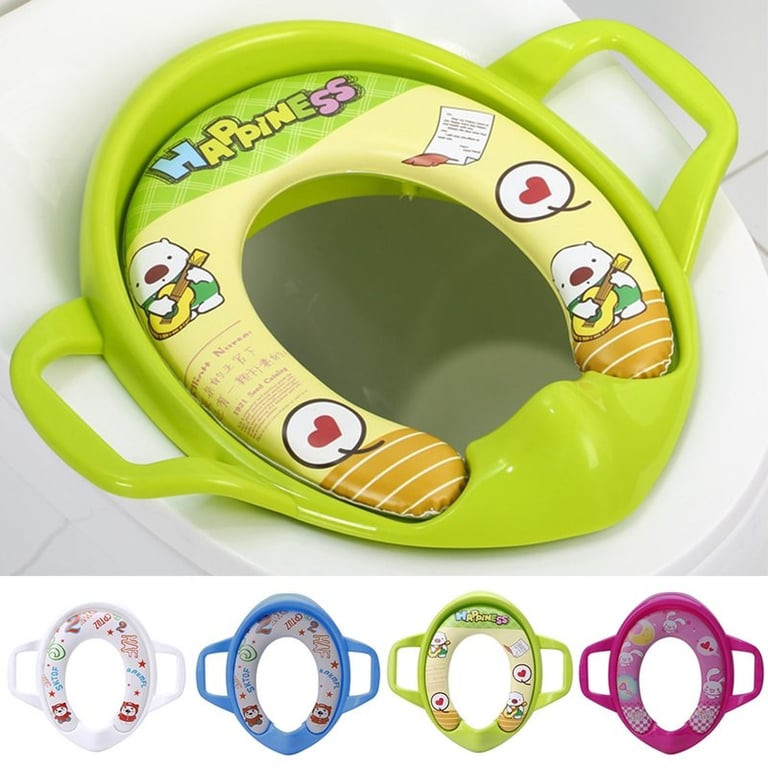 Toilet seat for children. A great aid for teaching kids to use the toilet. Soft padding for comfortable seating. Hand grips.