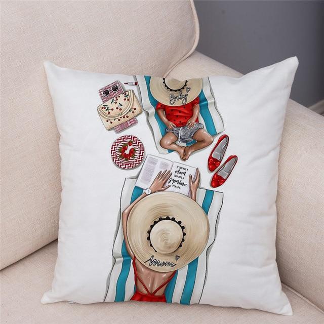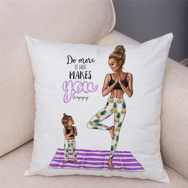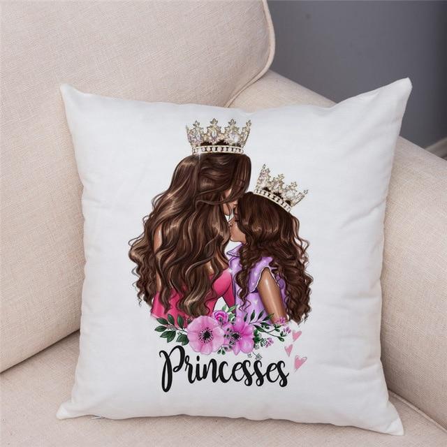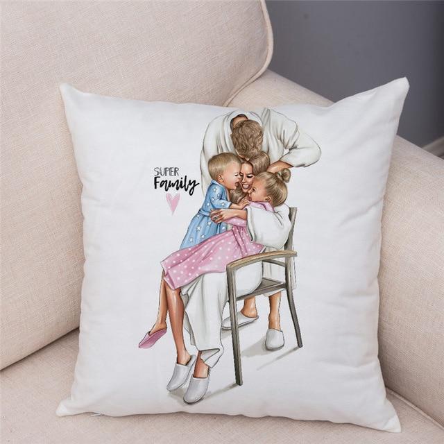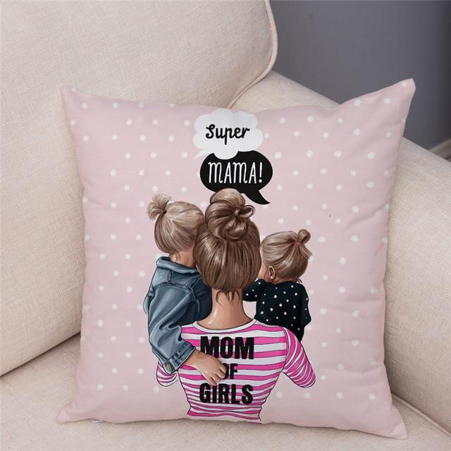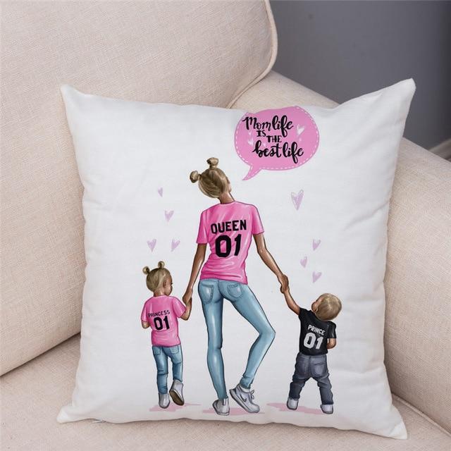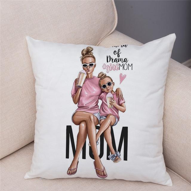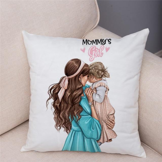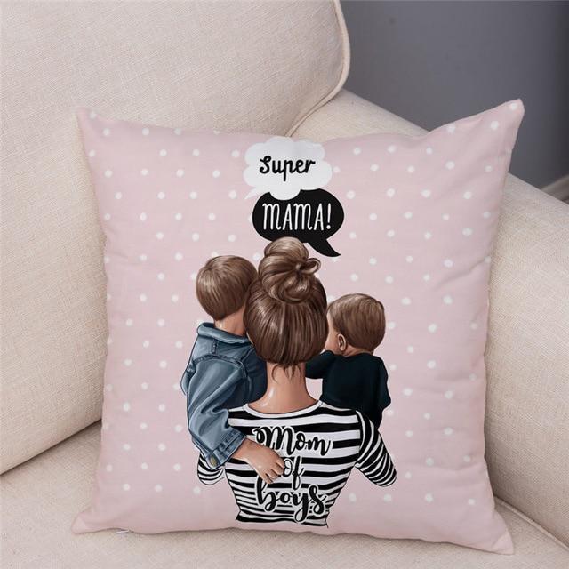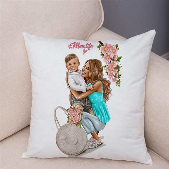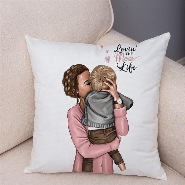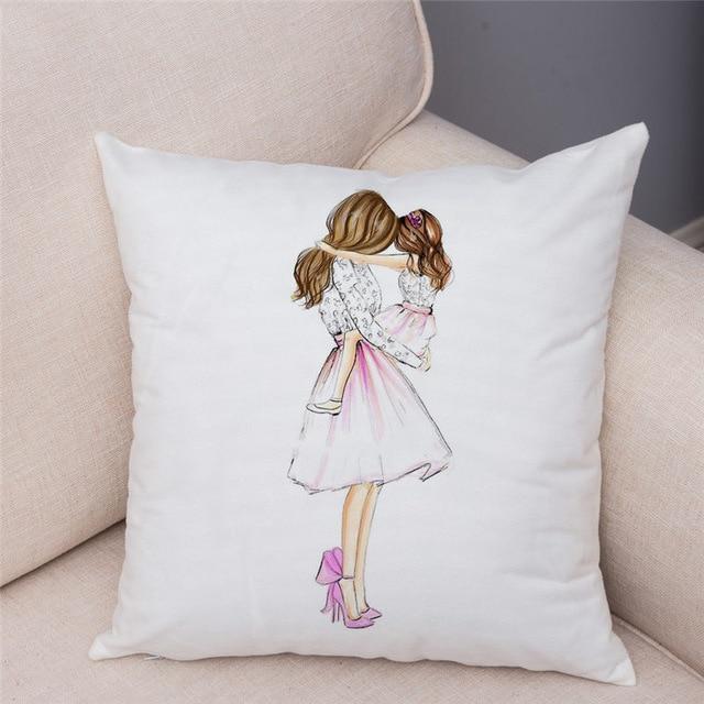 Cute designs of a mother with a child on a cotton cushion cover. Size of the cover is 45 x 45 cm.