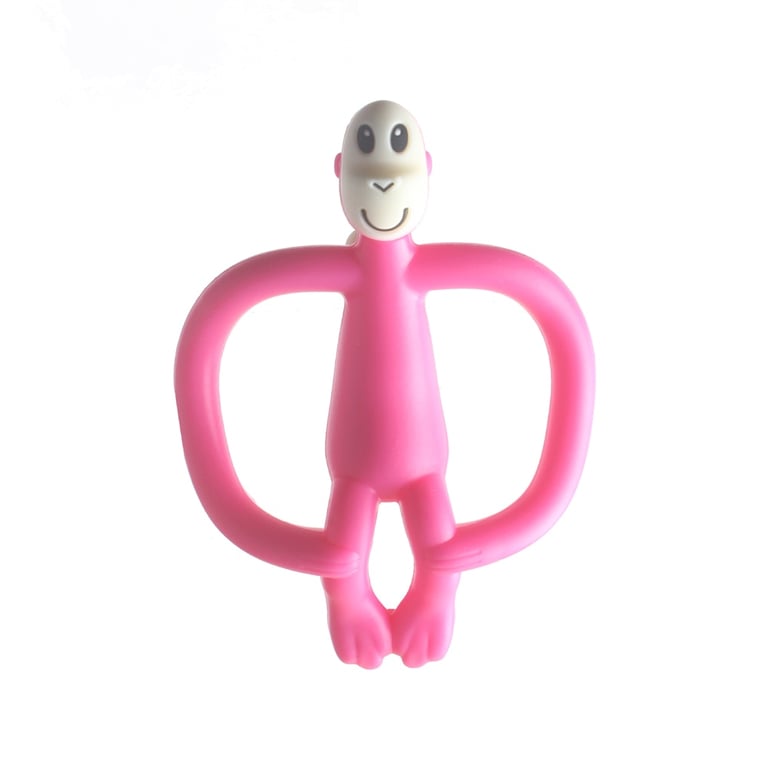 A children's silicone teething toy shaped like a monkey. Available in four colours – green, blue, pink, and yellow. The teething toy is ideal for when your child is getting their first teeth.