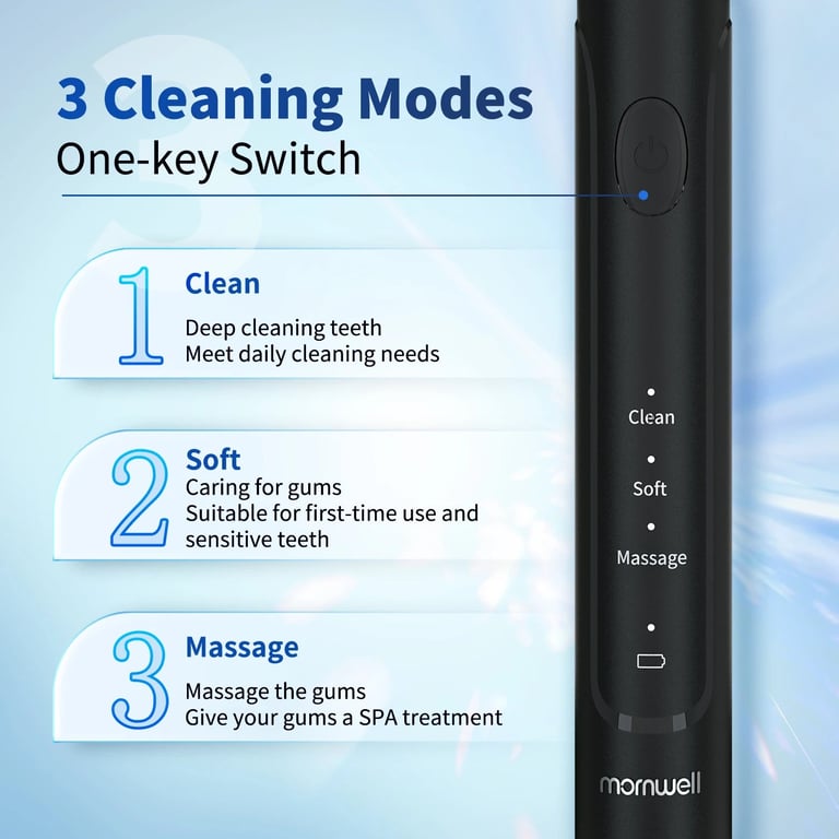 Its gentle yet thorough cleaning is ideal for people with sensitive teeth and gums. Equipped with modern technologies, it offers various cleaning modes, a timer for an optimal brushing duration, and long battery life.